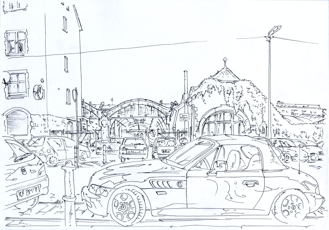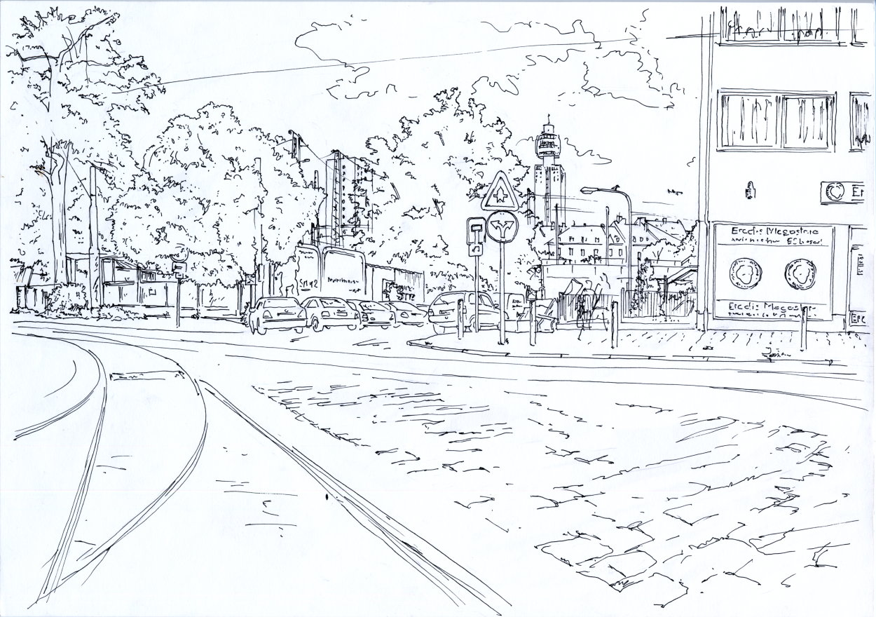 Strassenbahn Depot, Bornheim (mit altem Pissoir davor) (zerstört)