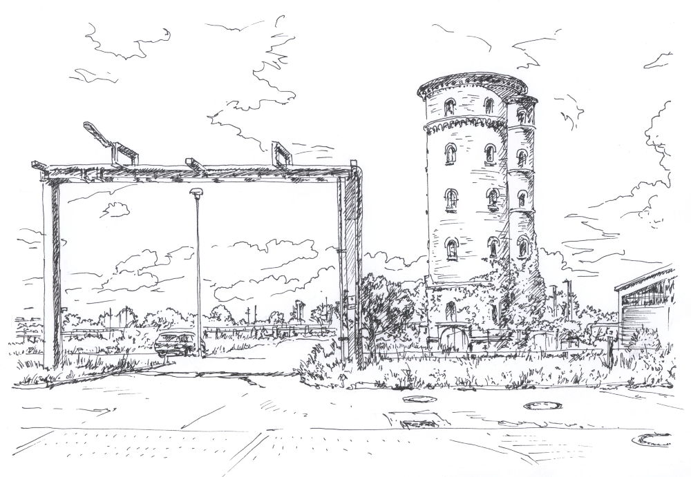 Strassenbahn Depot, Bornheim (mit altem Pissoir davor) (zerstört)