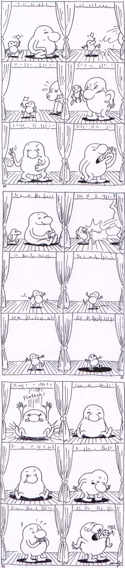 Oh, and in the preceding panel, 'zusammenklapp' means he's closing the book (litterally 'together-clapping'). It's really funny, trust me.)