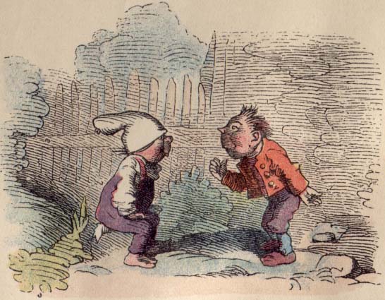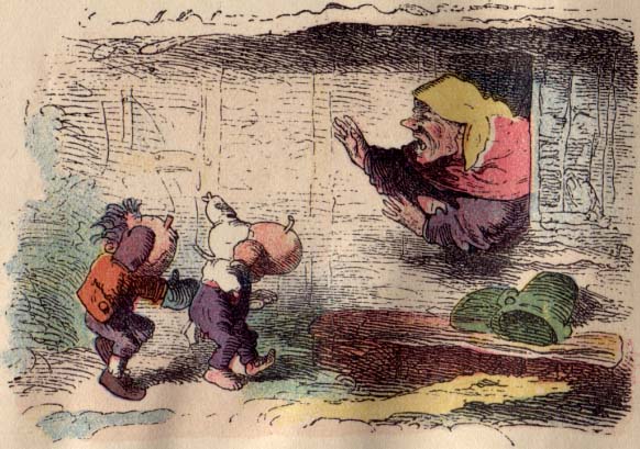| 'Ha, ha', sagt der Nachbar, der auf das Zetergeschrei herbeikommt, 'habt ihr's gemerkt, wie es beim Honigstehlen zugeht, jetzt lauft nur heim mit euerm Denkzettel.' |