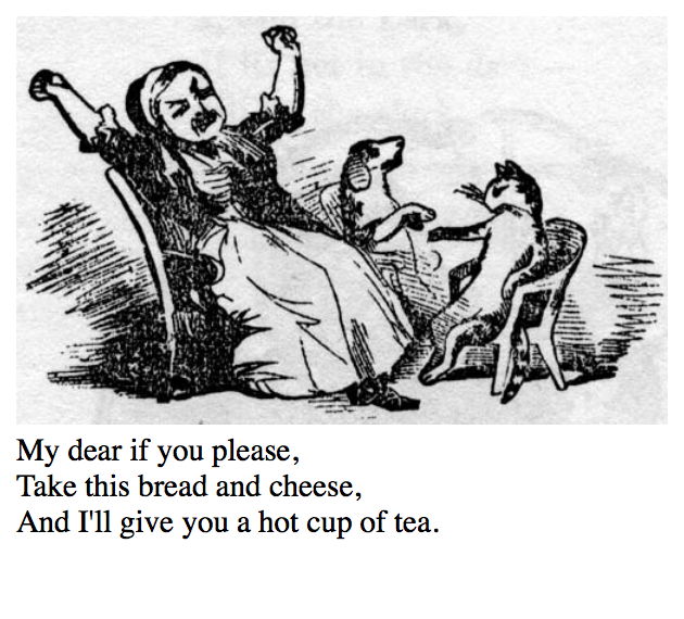 This book contains two stories, the second one (shown below) was a new version of Branston's comical cat (1818), apart from the first picture which in turn was based on the original chapbook from 1806. The drawings are in reverse.