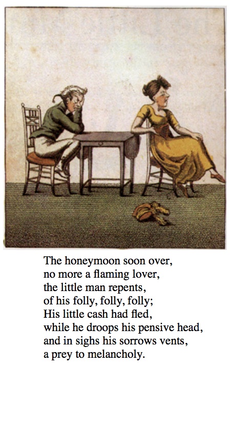 This is not a comic. It's not even a sequential series of images, like a Hogarthian progress, or even illustrations of a novel. But it can be seen as a milestone in comics history, because of the influence on Rodolphe Toepffer, who imitated the type of main character, the drawing style and the general atmosphere of countryfied wackyness. The use and re-use of one striking visual character, generally recognized and popular, is certainly typical of many comics to come.