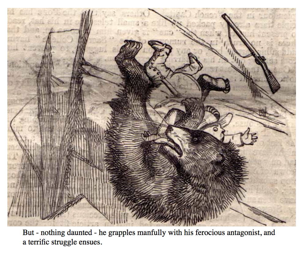 (Two-panel cartoon which may have been the inspiration for a famous comic by A.B.Frost, part of which is shown)