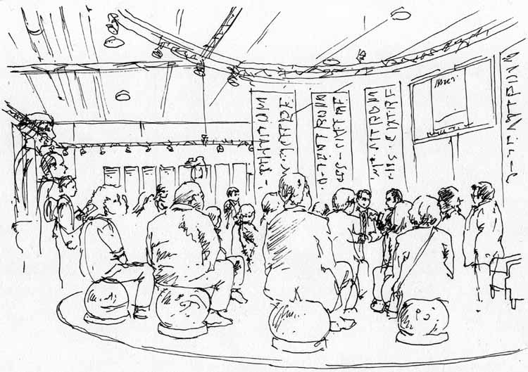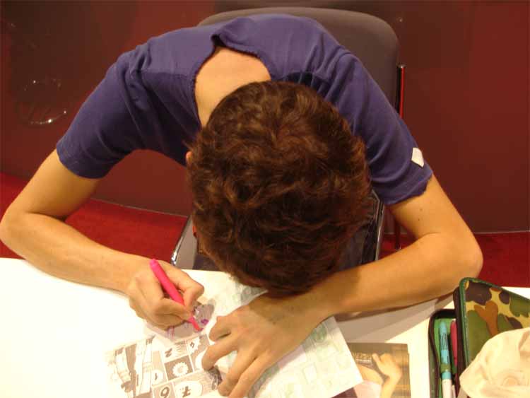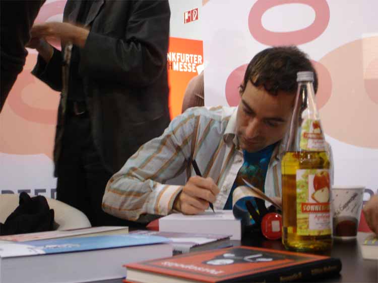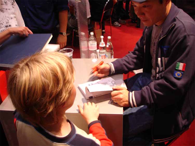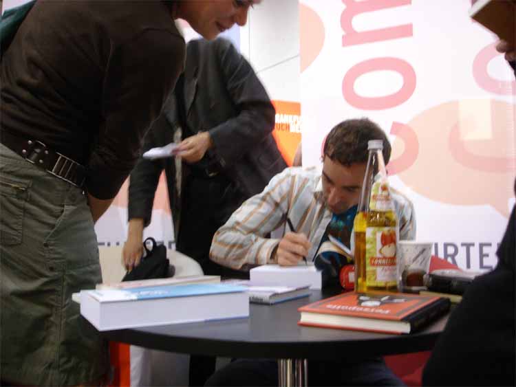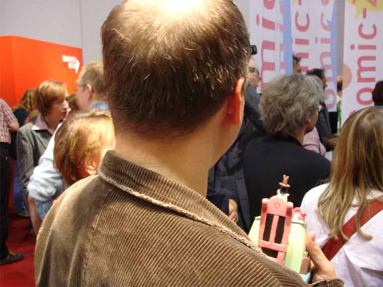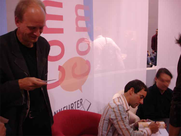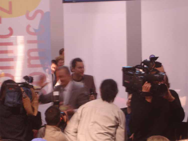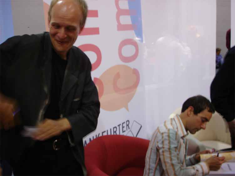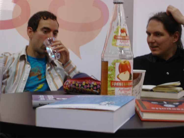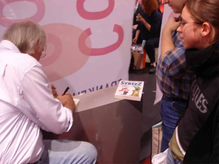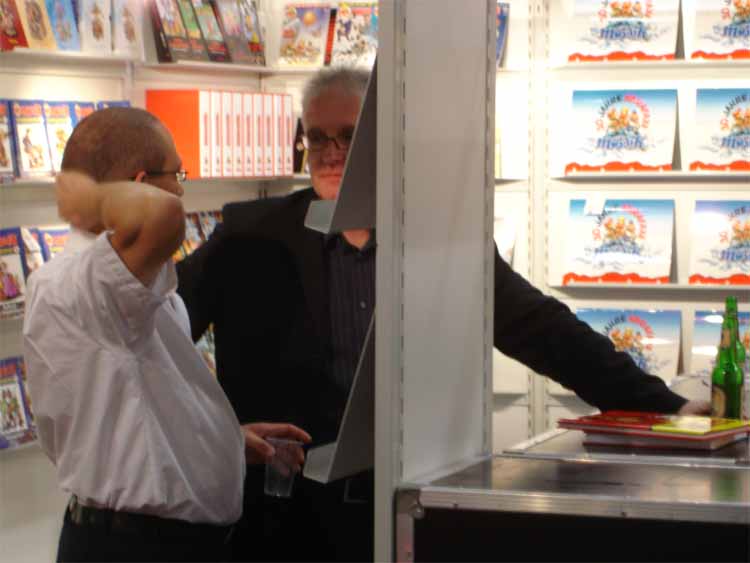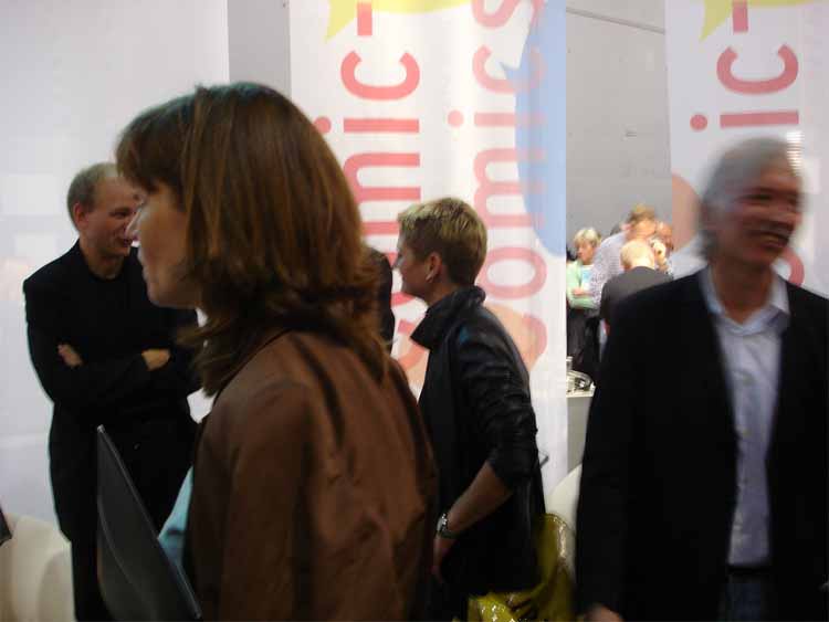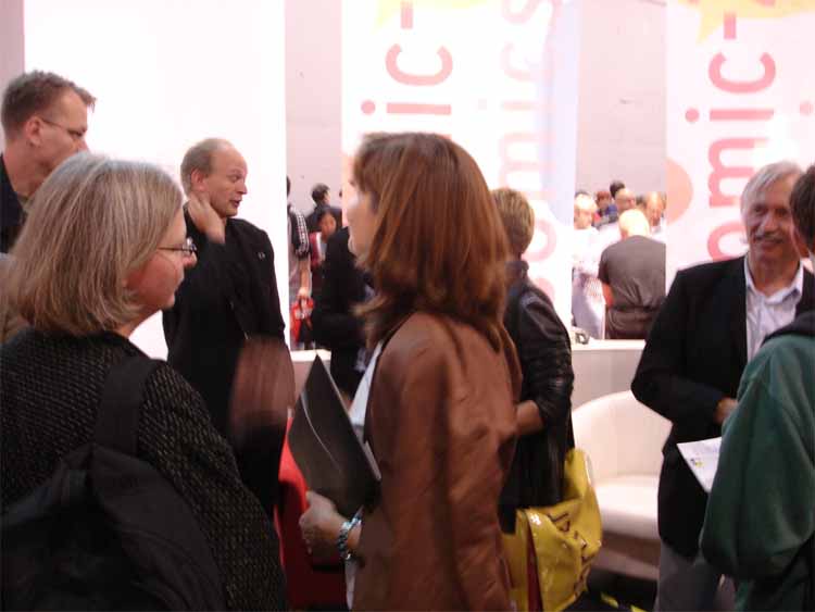 left to right: Eckart Schott (editor Salleck, publishes Juillard), André Juillard, Interpreter, Andreas Knigge (comics historian, ex editor-in-chief of Carlsen)