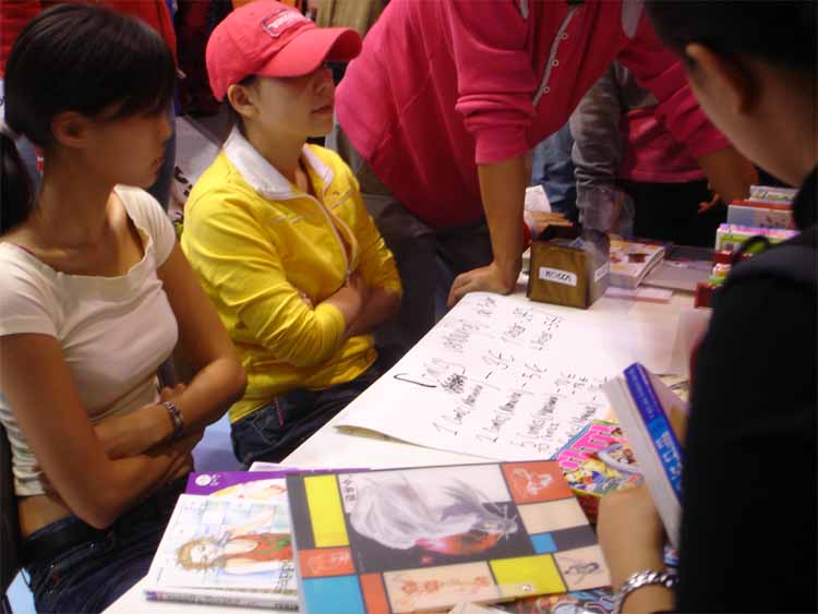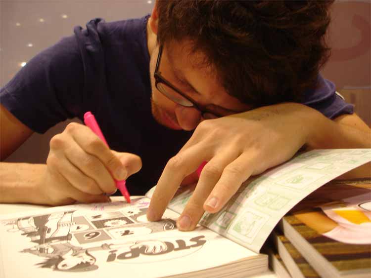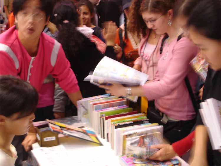 Inside stall of publishers 'Comicplus' and 'Schreiber & Leser'
